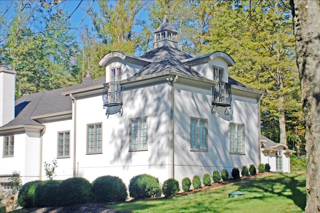 Greenwich CT home details wrought iron balconies