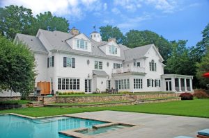Grand Colonial home in Westport CT rear shown
