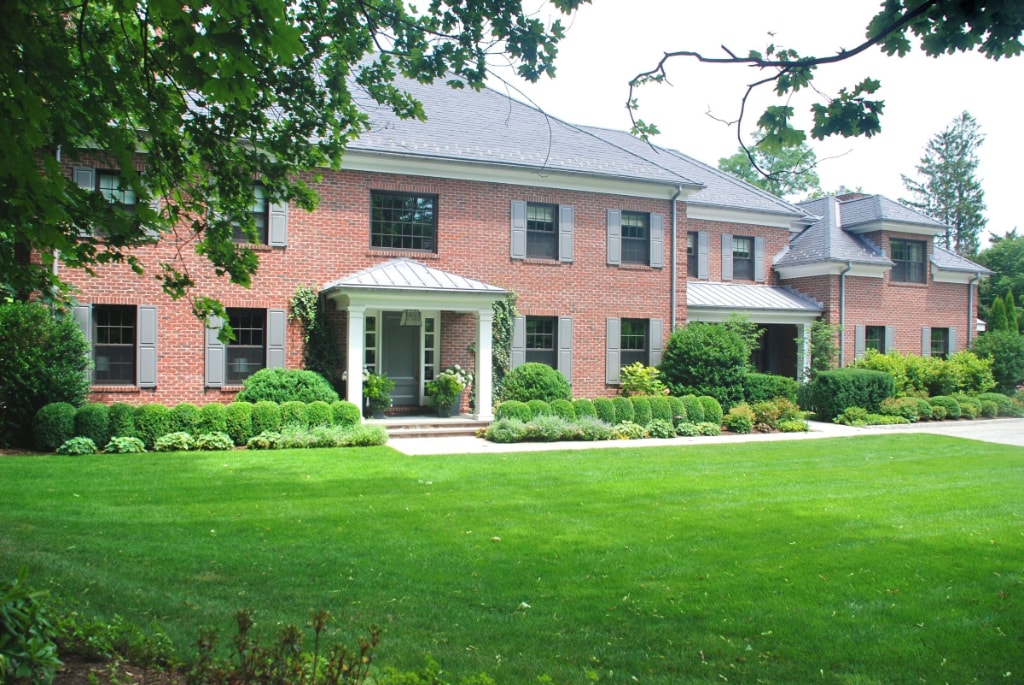 Georgian Colonial home in Greenwich CT: This is a custom home on a “tear-down lot” on a 2.6 acre property. The clients wanted to design a classic Georgian Colonial home, complete with brick veneer, slate roof, & copper gutters.