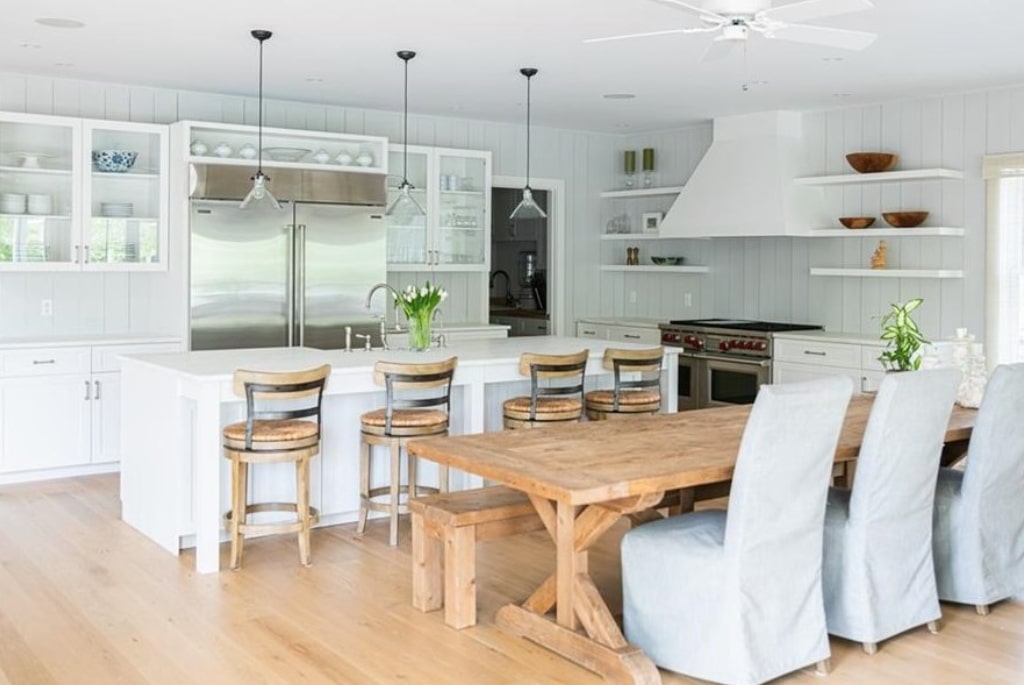 Rowayton CT coastal farmhouse kitchen and dining