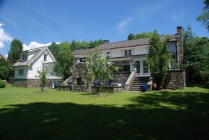 backyard of rye ny colonial home remodel by demotte architects