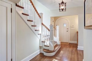 Tudor home interior with arched door in Rye NY